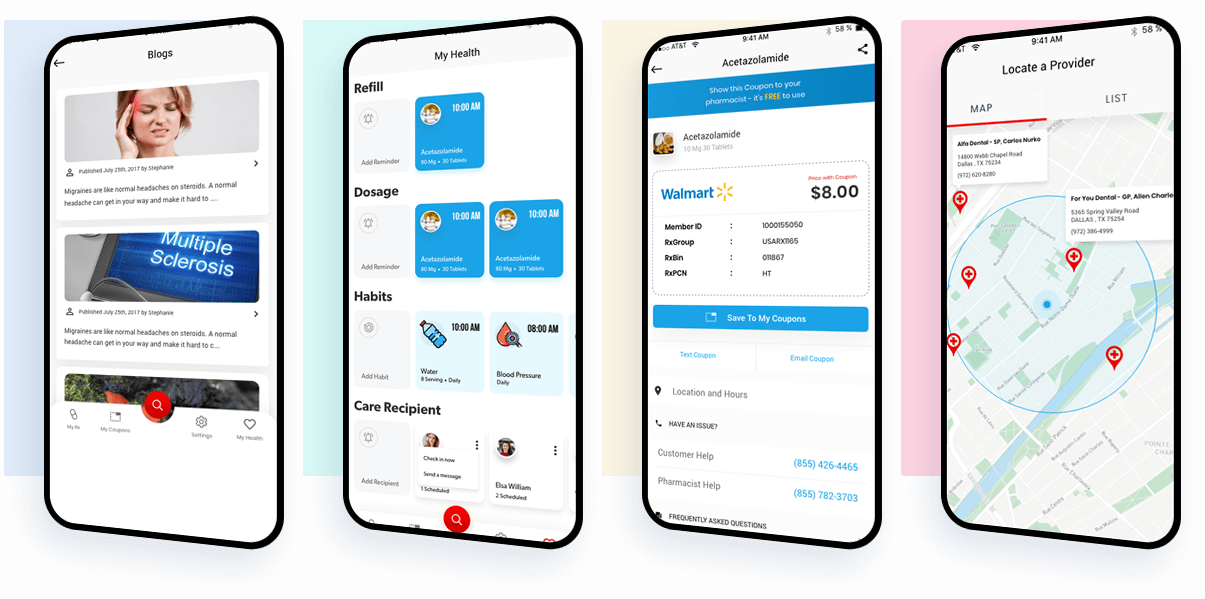 The application allows users to search for discounts on their prescription drugs and are able to compare the prices of those drugs according to different pharmacies in their location. The application also offers discount coupons to save in their phone storage and also able to share it via Email or Text message.